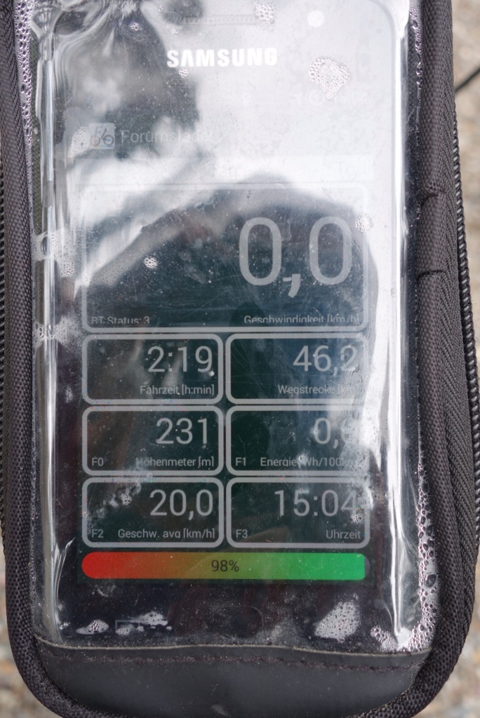 Wir fahren weiter und wechseln die Straßenseite. Erst als wir an der Stelle wo wir den Bären gesehen haben vorbei sind, fahren wir wieder rechts.