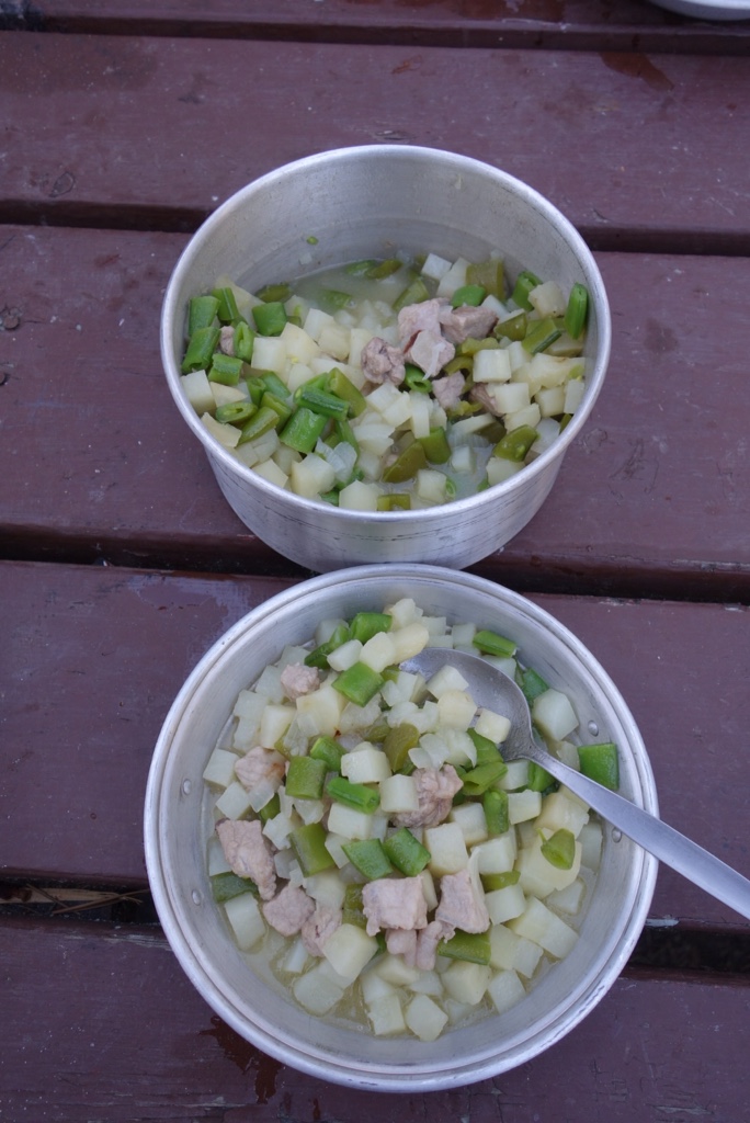Der Campground ist eigentlich sehr schön. Ein Stück Wald, auf der einen Seite fließt der Saskatchewan River vorbei. Leider gibt es aber auch einen Sumpf am Waldrand. Mückenalarm! Ohne Ende. Schnell waschen, lange Hose und dicken Pulli anziehen. Das Abendessen war auch kein Spaß.
